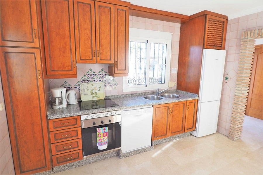 The kitchen is fully equipped such as fridge/freezer, 4-burner electric hob, microwave, oven, coffee maker, sandwich maker, kettle and washing machine.