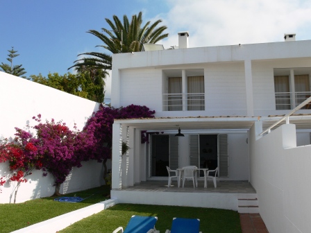Buiten, de tuin heeft schitterend uitzicht over zee, Playa Carabeo en het bekende Balcon de Europa. Tafel met 6 stoelen, 2 ligstoelen, parasols en een BBQ.