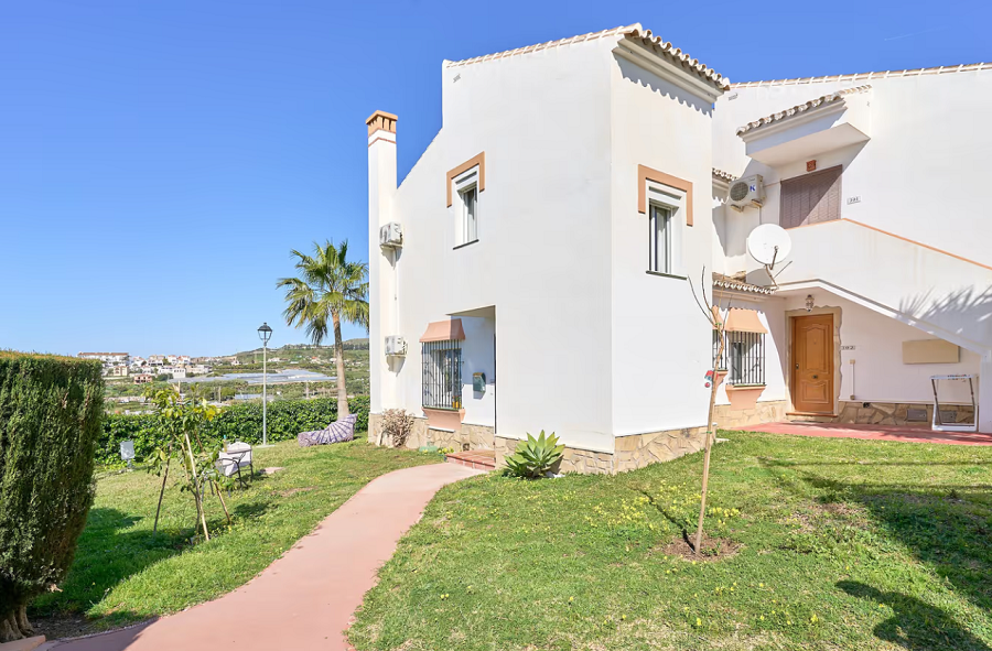 Mooie lichte hoekwoning met uitzicht op zee in Torrox Park met 2 slaapkamers en gemeenschappelijk zwembad en 2 tennisbanen. Het heeft uitzicht op zee vanuit de woonkamer en slaapkamer en er is veel buitenruimte direct rondom het huis, waardoor het een ideaal huis is voor gezinnen.